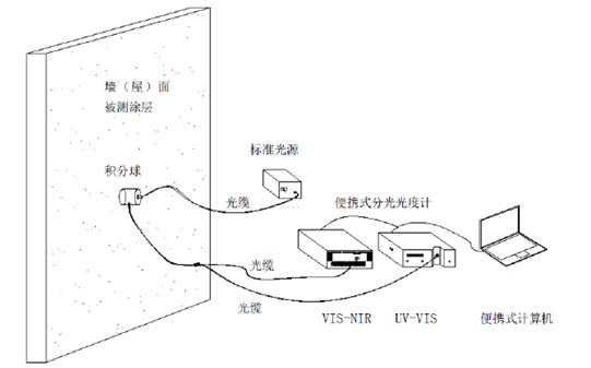 根據JGJ/T287-2013《建筑熱反射涂料節能檢測標準》的規定,太陽反射比的實驗室檢測應采用光譜法或輻射積分法,戶外測試可采用相對光譜法。相對光譜法有2種:(1)分光光度計法;(2)光纖光譜法。 AvaSR-96型便攜式太陽光譜反射儀是采用光纖光譜技術,專門用于建筑反射隔熱涂料太陽反射比的戶外現場測試。