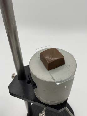除了便宜的牛奶巧克力樣品是一塊單獨的巧克力外,每個巧克力樣品都是從一塊完整的巧克力上掰下來的。每個樣品都儲存在21℃左右的房間抽屜里,以確保巧克力不會熔化。測量時,每個巧克力樣品先分別放置在玻片上,然后將玻片放在積分球的樣品端口上(圖4)。