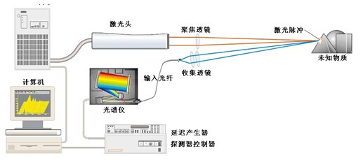 激光誘導(dǎo)等離子光譜(LIPS)或者更常見(jiàn)的叫法激光誘導(dǎo)擊穿光譜(LIBS)是一種原子發(fā)射光譜,它使用脈沖激光器作為激發(fā)源。激光脈沖(典型值10 ns)聚焦到被測(cè)物體的表面,使被測(cè)材料表面的激光功率密度超過(guò)1 GW/cm2。在如此之高的激光功率密度作用下,被測(cè)材料表面就會(huì)有幾微克的物質(zhì)被噴射出來(lái)同時(shí)材料表面還會(huì)產(chǎn)生壽命很短但亮度很高的等離子體,其瞬間溫度可達(dá)10,000 攝氏度 。冷卻過(guò)程中,處于激發(fā)態(tài)的原子和離子從高能態(tài)躍遷到低能態(tài),并發(fā)射出具有特定波長(zhǎng)的光輻射。探測(cè)系統(tǒng)可以使用高靈敏度、高分辨率、多通道光纖光譜儀AvaSpec-2048-X進(jìn)行測(cè)量,每個(gè)通道均有2048像素線陣CCD探測(cè)器。采集到的200-1050 nm寬光譜數(shù)據(jù)傳送給應(yīng)用軟件進(jìn)行分析。